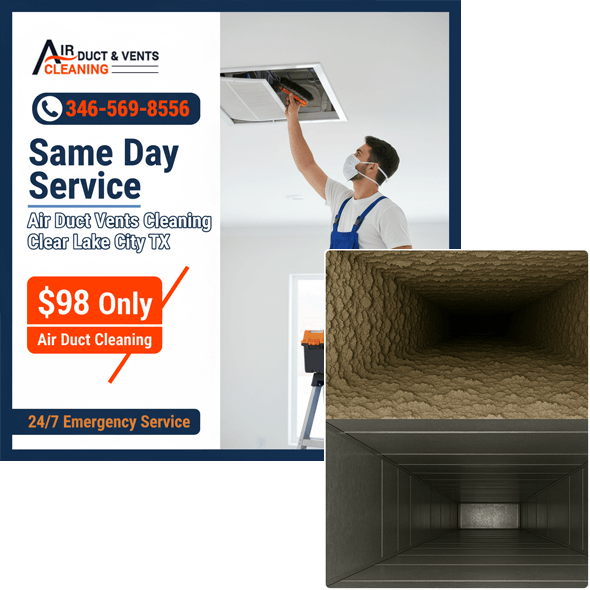 Schedule your air duct cleaning appointment today with Clear Lake City TX Air Duct Vents — enjoy cleaner air, same-day service, and a free estimate!